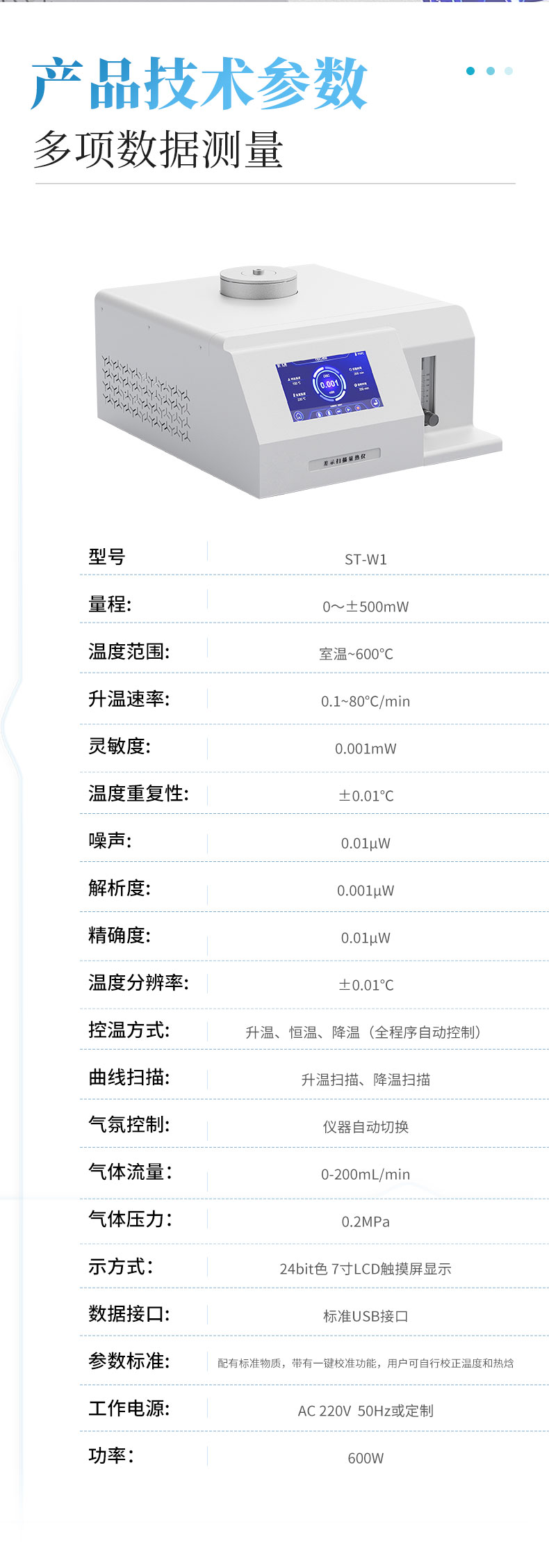 测量与热量有关的物理、化学变化,如玻璃化转变温度、熔点、熔融温度、结晶与结晶热、相转变反应热,产品的热稳定性、固化/交联、氧化诱导期等。
