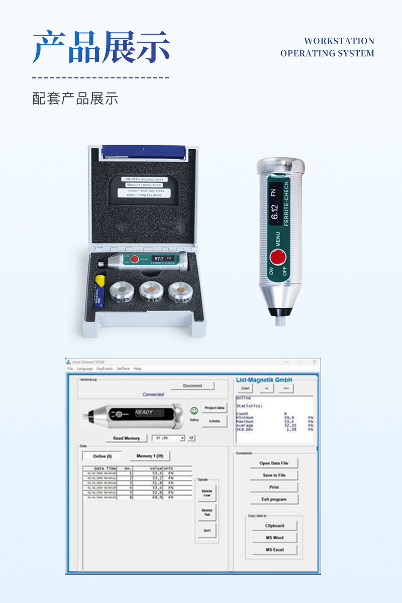 FERRITE-CHECK 140主机,3个标准片,电池,仪器箱,出厂测试文件,说明书。