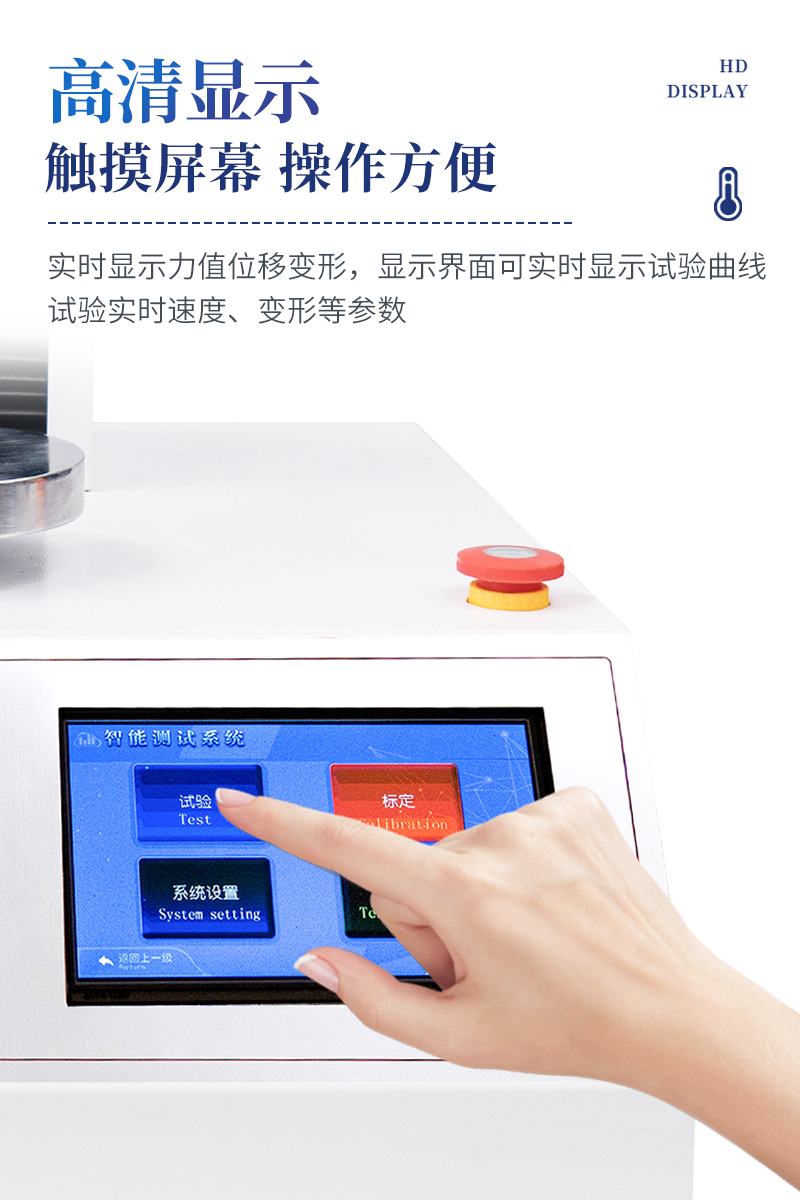 1、触摸屏显示器实时显示力值,位移变形,自动保存当次试验**值;显示界面可实时显示试验曲线;试验实时速度、变形等参数。