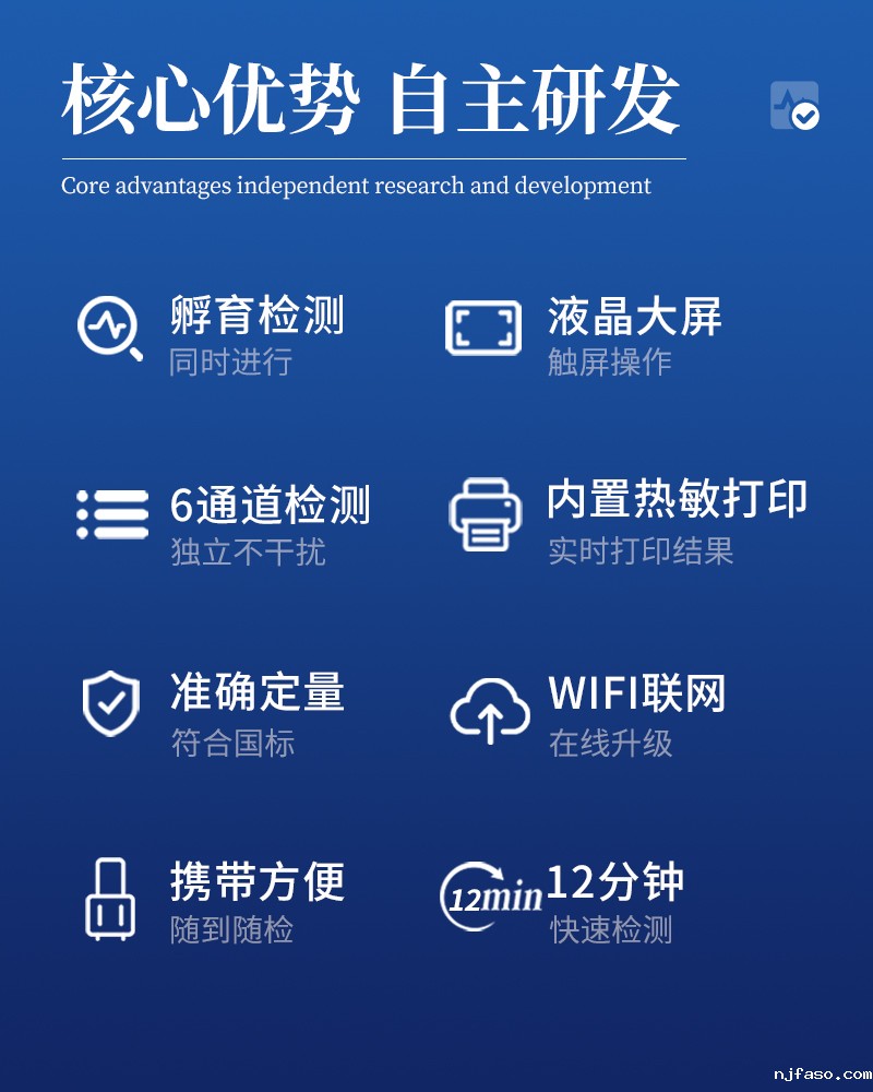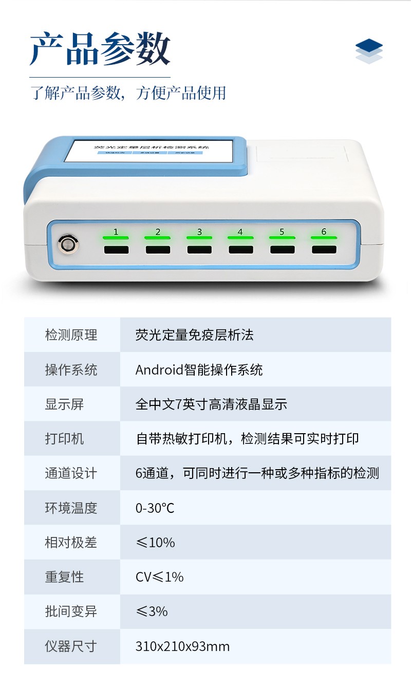 5、6通道设计,可同时进行一种或多种指标的检测,6个独立检测单元,检测效率高,并且互不干扰;