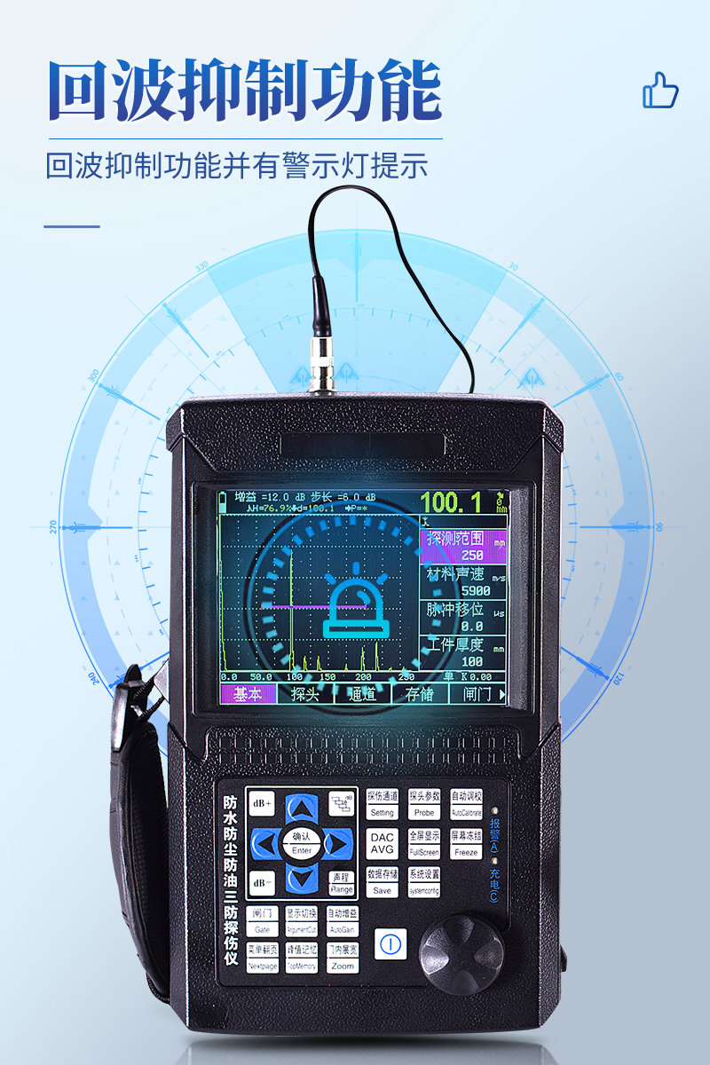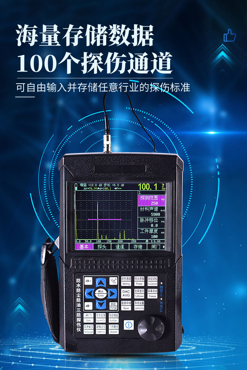 便携式超声波探伤仪能够快速便捷、无损伤、准确地进行工件内部多种缺陷如裂纹、焊缝、气孔、砂眼、夹杂、折叠等的检测、定位、评估及诊断,广泛应用于电力、石化、锅炉压力容器、钢结构、航空航天、铁路交通、汽车、机械等领域。它是检测行业的重要仪器。