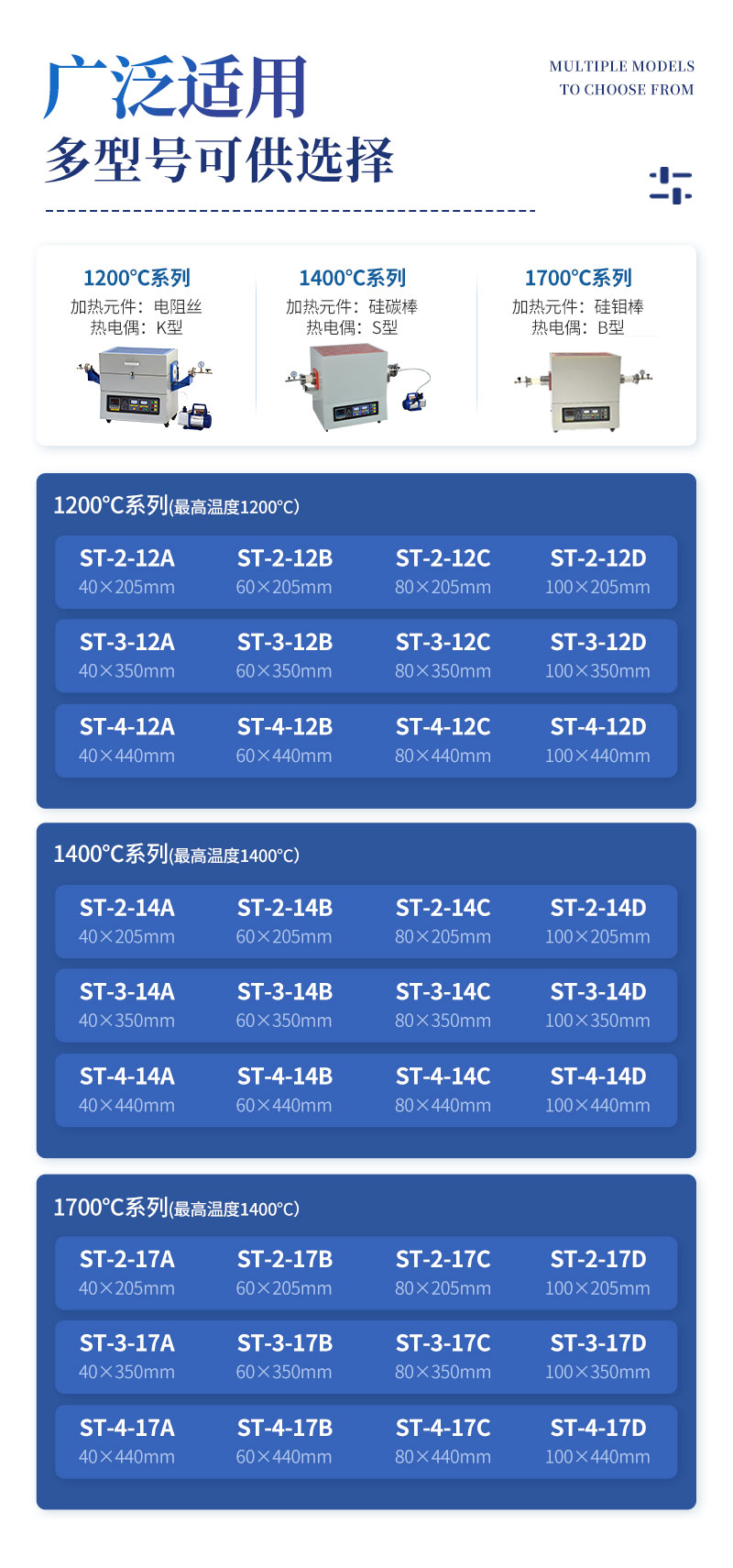 4. 采用**技术,有单管、双管等多管,卧式、可开启式、立式、单温区、双温区、三温区、四温区、五温区等多种管式炉型;可选择配置耐热钢、高纯石英玻璃、刚玉陶瓷等材料炉管,均温区长,操作简便,密封可靠,综合性能指标较高。