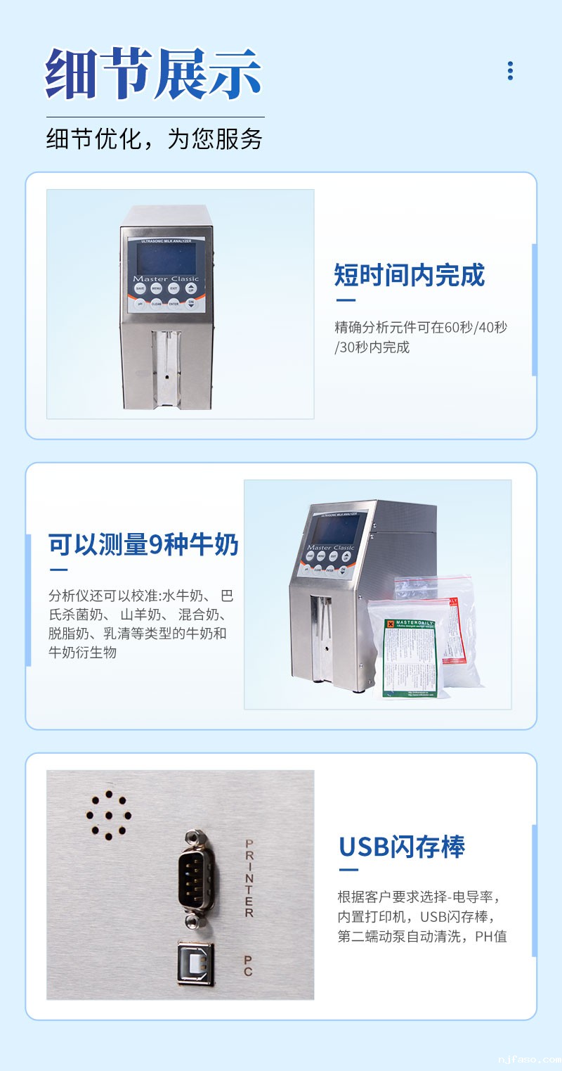 1、MILK CLASSIC是一种高质量可以测量9种牛奶参数的仪器。