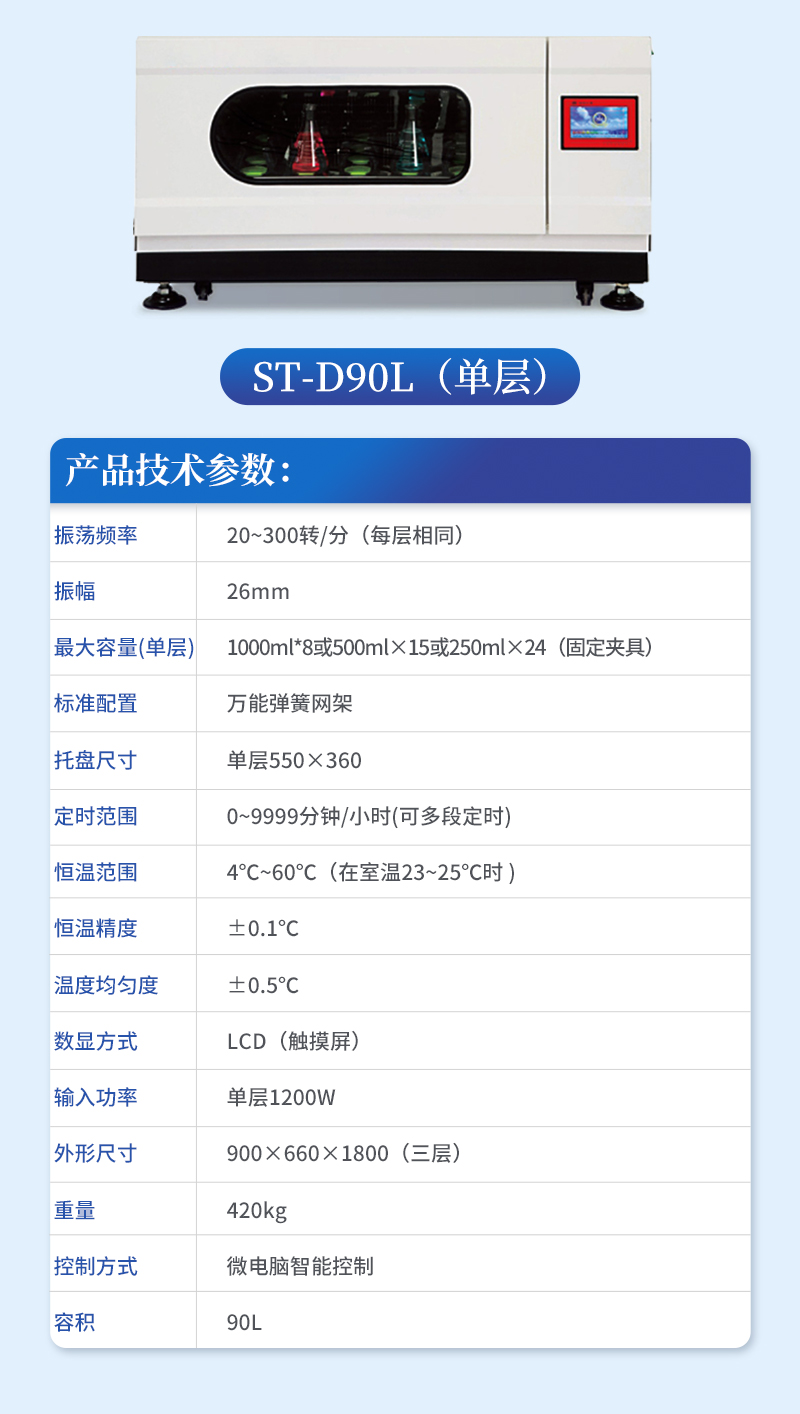 | 振荡频率 Oscillation frequency | 20~300转/分(每层相同)20~300rpm |