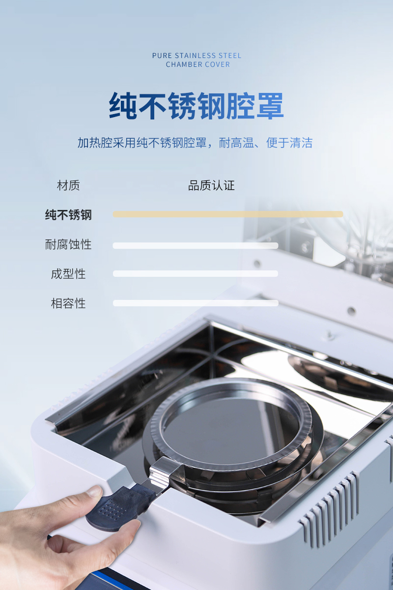 11、加热腔采用纯不锈钢腔罩,耐高温、便于清洁。