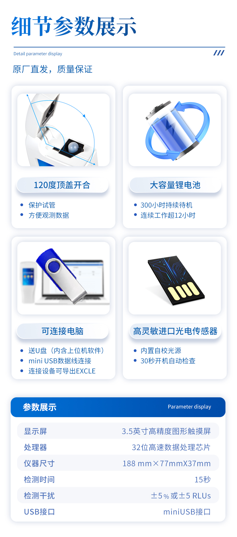 19、配有miniUSB接口,可将结果上传至PC